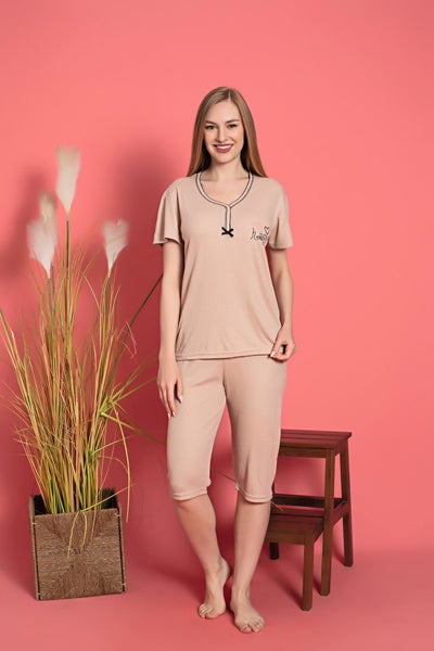 طقم بيجاما LİLA İÇ GİYİM لون بيج