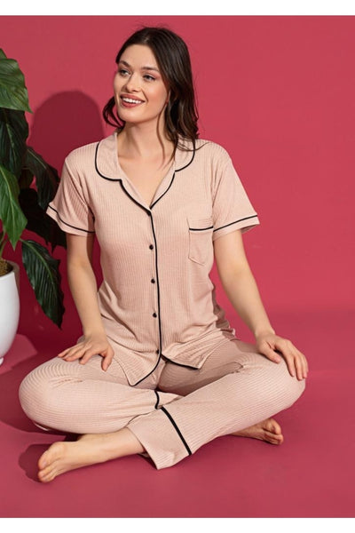 طقم بيجاما LİLA İÇ GİYİM لون بيج