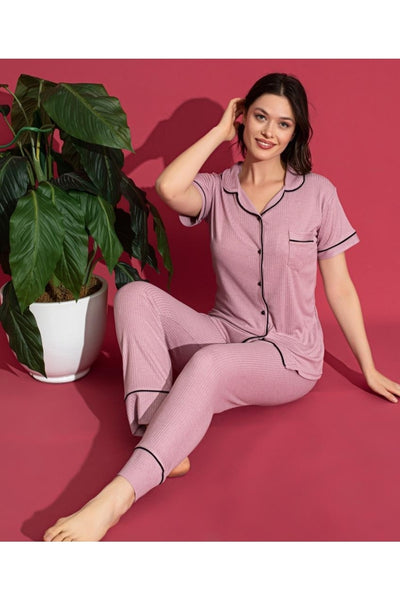 طقم بيجاما LİLA İÇ GİYİM لون زهري